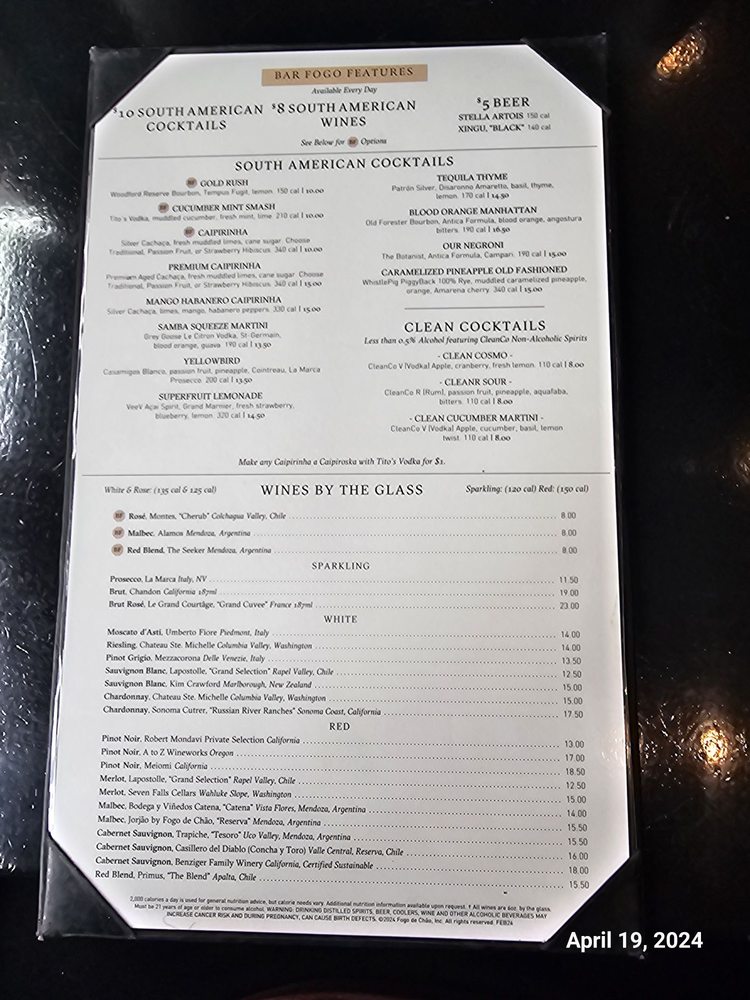 Introducing the menu at Fogo de Chao, a South American steakhouse in Philadelphia, offers a unique dining experience. Known for its upscale atmosphere and delicious meat selection, this restaurant caters to various dietary preferences with vegan and vegetarian options. The menu includes a variety of South American cocktails, such as Caipirinhas and Cucumber Mint Smash, as well as Clean Cocktails like Clean Cosmo and CleanR Sour. Customer reviews praise the quality of the food and the attentive service, making it a popular choice for special occasions or casual dining. With a bustling energy and impressive meat offerings, Fogo de Chao is a must-visit destination for meat lovers and food enthusiasts alike.